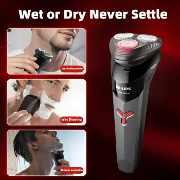 Rechargeable Electric Shaver with Floating Heads & Self-Sharpening Blades