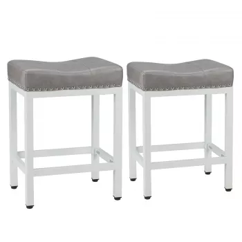 Saddle-Style PU Leather Adjustable Bar Stools with Metal Base