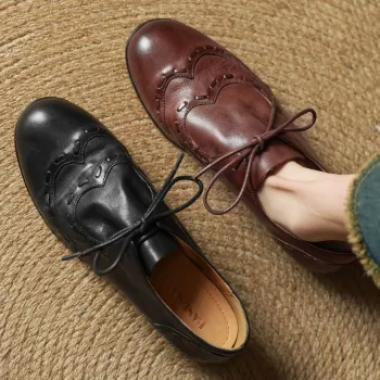 Women's Genuine Leather Oxford Flats Retro Lace-Up Shoes