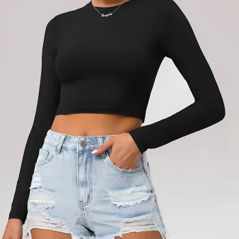 Women’s Slim Fit Long Sleeve Yoga Crop Top – Quick Dry Workout Shirt